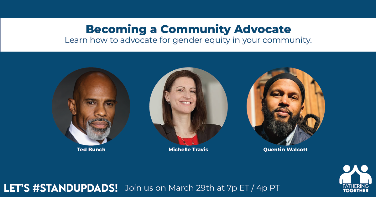 « All Events This event has passed. How Dads Can Become Community Advocates March 29, 2021 @ 4:00 pm - 5:00 pm « Gender Equity and Work/Family Integration in a Post-Pandemic World The Impact of the Pandemic on Women in Law » + Google Calendar+ iCal Export Details Date: March 29, 2021 Time: 4:00 pm - 5:00 pm Website: https://www.fatheringtogether.org/standupdads/
